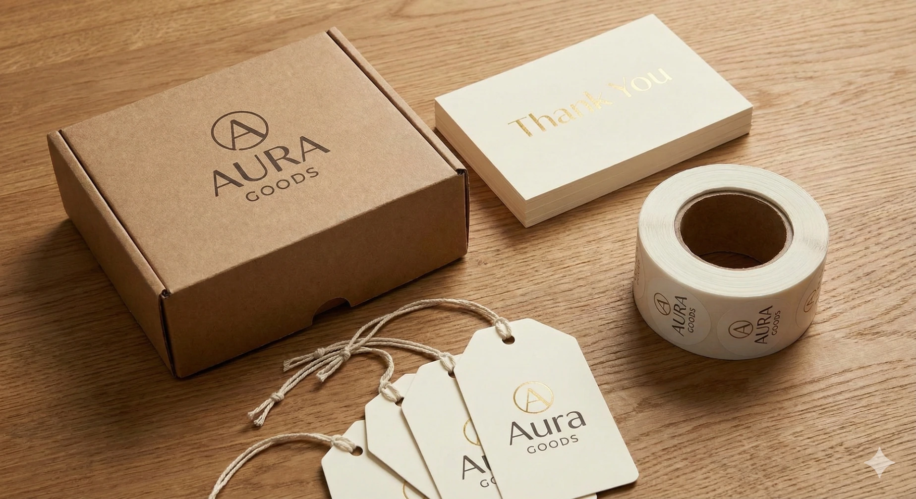Small Business Branding Kits: Complete packages including Thank You cards, care tip cards, and logo stickers.